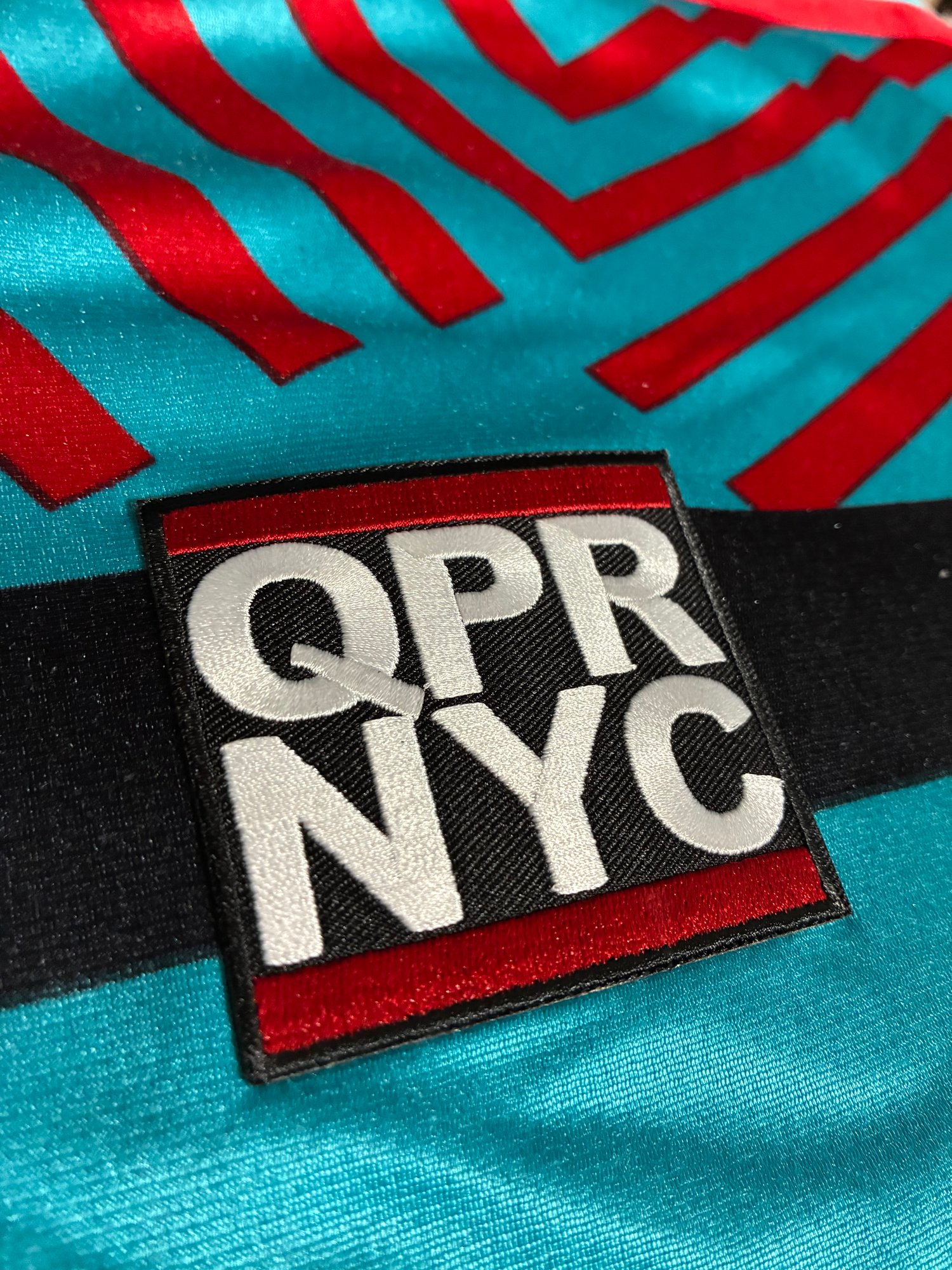 This vintage 80s adidas template has been customized with an embroidered QPR NYC patch as well as a Football Factory sponsor logo. The back was preprinted with the number 56 (in adidas number font) and the name URS - U Rs?!